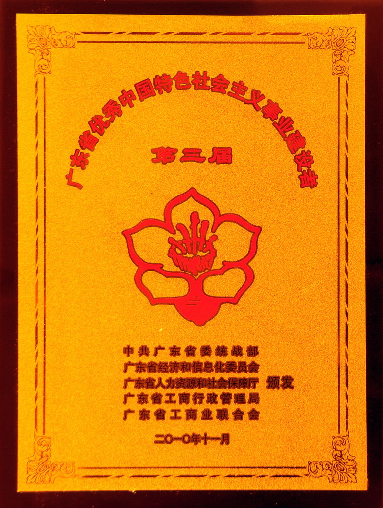 2010年11月4日,第二届新粤商大会在广州举行。大会隆重表彰了广东省第三届优秀中国特色社会主义事业建设者。中共中央政治局委员、省委书记汪洋,中共中央统战部副部长、全国工商联党组书记全哲洙,中国侨联主席林军,省长黄华华,省人大常委会主任欧广源,省政协主席黄龙云等出席大会。
